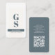 Slate Blue Ivory Minimalist Modern Initial QR Code Business Card
