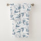Slate Blue Layered Watercolor Leaves Pattern Bath Towel Set