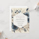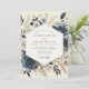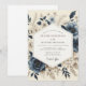 This elegant design features a romantic floral arrangement with a vintage, painterly feel. Bouquets of slate blue anemones and creamy white blossoms create a beautiful composition against an ivory background. Muted taupe foliage completes this sophisticated and moody aesthetic for your special day.