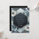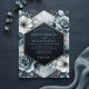This design features a rich tapestry of deep slate blue blooms with delicate white accents, set against a marbled grey backdrop. Evoking a sense of refined elegance, the artistic floral arrangement offers a sophisticated and moody aesthetic. The intricate details of the blossoms create a striking visual for a memorable occasion.