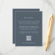 Add important information to your wedding suite with this modern winter enclosure card from Redwood & Vine Design Co. Set on a deep slate blue background with clean white text, this editable card is perfect for including travel, accommodation, or weekend itinerary details. The design also features a scannable QR code that links to your wedding website or registry, offering a stylish and functional way to guide guests through your big day. Ideal for mountain, lodge, or cold-weather celebrations.