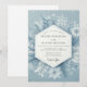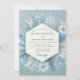 Delicate icy blue blooms and frosted foliage create a whimsical winter wonderland aesthetic. This design evokes a serene and enchanting mood, perfect for a romantic cold-weather event. The cool color palette features soft blues and hints of frosty white.