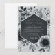 This enchanting design features a monochrome palette with delicate floral illustrations and lush botanical elements. The art evokes a moody, romantic atmosphere, perfect for a sophisticated event.