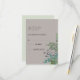 This botanical wedding RSVP features green foliage leaves, berries and small branches on a pale grey background. The reverse of the card features a pale, mint green background. Whether it's for a garden wedding, spring wedding, outdoor wedding, or botanical themed wedding, its simple, rustic design would be perfect.