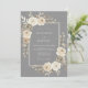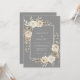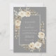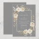 This design features a sophisticated charcoal grey backdrop adorned with lush watercolor roses in shades of ivory and cream. Muted tan foliage and delicate sprigs create an elegant, moody aesthetic perfect for a refined evening. The botanical elements provide a soft contrast against the deep neutral tones, evoking a timeless and romantic atmosphere.