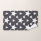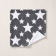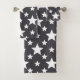 Trendy towels with a pattern of large and small white stars on a slate grey background.