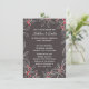 A symbol of love and kisses, hand sketched mistletoe leaves with red berries border the foliage themed invitation. The background is a modern slate grey. Personalise this whimsical engagement party invitation with your information, the back has space for more information if you need to provide other details such as directions or maps. These romantic invitations are great for a winter, Christmas, or holiday wedding.