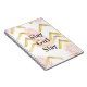This design mixes pink and gold and grey colours with an arrow and feather design.