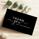 This sleek black modern business thank you note card features elegant typography with the text “Thank You” on the front, creating a bold and professional look. The minimalist black background adds a touch of sophistication, perfect for modern brands and professionals. The back includes space for your personalised thank-you message and logo, making it ideal for client appreciation, packaging inserts, or corporate correspondence. Designed for small business owners and entrepreneurs who value clean, stylish branding.