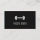 A modern, minimalist business card with the white vector outline of a dumbbell with rounded weights over a dark grainy texture sleek black background. Personalise easily with your contact details. Great for freelance personal trainers, fitness instructors and anyone in the fitness industry.