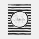Sleek Black White Awning Stripes Monogrammed Name Fleece Blanket
