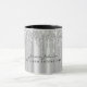 This luxury mug template features silver metallic faux foil under sparkling glitter dripping and personalised name and profession in elegant calligraphy script handwritten font. Customisable black details and personalised background image.