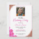 Charming pink floral theme with rose gold glitter accents, showcasing a personal photo and complete 90th birthday information.
