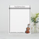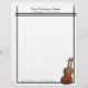 Music business letterhead featuring a lined frame on three sides with a double bar line across the top. Fields have been provided for you to personalise with your business name, address, phone and website addresses. A violin image with shadow adorns the bottom right corner.