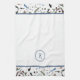 CONFETTI RAIN Initial Kitchen Towel. Sleek, modern, abstract watercolor pattern.
