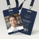 Sleek Modern Navy Blue Corporate Photo Barcode ID ID Badge