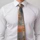 Upgrade your style with our fashion tie! This vintage-inspired accessory features a bold orange and white striped grid pattern on a warm brown background. The black and white squares add depth and texture, making it perfect for formal events or as a statement piece in your wardrobe. Show off your unique sense of style and elevate your outfit with this sophisticated and modern tie.