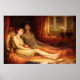 “Sleep and His Half Brother Death” by John William Waterhouse is a hushed, intimate vision of myth made human. Two figures rest together on a richly draped bed, their bodies turned toward the same distant light as if listening for something just beyond the room. The warm reds and golds of the fabric and lamplike glow create a sensual, protective atmosphere, yet the stillness carries a quiet unease. Waterhouse balances softness with gravity through subtle contrasts, the tenderness of relaxed limbs and gentle skin tones set against deeper shadows and heavy curtains. The setting feels both private and ceremonial, like a threshold space where comfort and finality meet. Sleep appears inviting, a calm surrender, while Death lingers as a near twin presence, close enough to seem familiar rather than violent. The result is a meditation on how easily rest can resemble endings, and how beauty can make that closeness feel strangely peaceful.