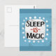 "Sleep Is Magic" is a fun text design with a white accent shape surrounded by white whimsical textured dots.