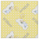 Sleeping baby boy and yellow polka dot personalised nursery fabric with name in grey featuring a sleeping baby boy in light blue on a cloud and the crescent moon in yellow and your name. A cute yellow and white polka dot pattern background. Some elements by Trina Clark.