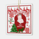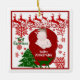 Customised Name for Baby's First Christmas Ornament with your choice of font style, format and cute Christmas artwork. Make it an annual celebration of togetherness and merry making this Christmas. This ornament contains a sleeping baby, artistic snowflakes, red reindeers and green Christmas tree illustrations. Looks elegant and classy in a square Christmas ornament design. You will love it to hang it on your Christmas tree. Perfect Gift for a baby of friend or relative.