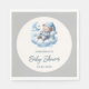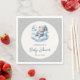 Celebrate the arrival of your little one with this charming paper napkin featuring a watercolor baby bear peacefully sleeping on a cloud. The cute illustration is encased in a circular frame against a classy light grey backdrop. Perfect for adding a touch of whimsy to your baby shower party