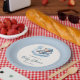Celebrate the arrival of your little one with this charming paper plate featuring a watercolor baby bear peacefully sleeping on a cloud. The cute illustration is encased in a circular frame, surrounded by a serene blue backdrop. Perfect for adding a touch of whimsy to your baby shower party