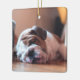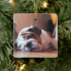 Sleeping Bulldog Bown and White Puppy Ceramic Ornament