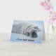 A white bulldog sleeping on a blue background. Strange combination of the very ugly and the extremely cute. Personalise by adding your own text to the front of the card, and inside.