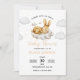 A sweet and dreamy baby shower invitation featuring a sleeping bunny resting on soft clouds with neutral beige and boho tones. Perfect for gender-neutral baby showers, woodland themes, bunny-themed celebrations, and modern minimalist baby parties. Fully customizable text for name, date, and details