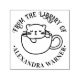 Sleeping Cat in Coffee Cup Round Library Book Name Self-inking Stamp
