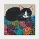 Sleeping Cat on Mountain of Yarn Illustration Magnet