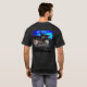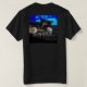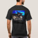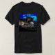 The design on this adult t-shirt is an original photograph of a cat sleeping in front of a television. The cat is a calico, with white paws coming towards the camera. A program about finance is on TV, with a bright blue graphic including the words "VENTURE CAPITAL FUNDING". Under the cat, showing her interest in financial matters, are the words "VENTURE CATIPALIST", in text with a cat fur pattern and a blue glow behind it, like the blue glow behind the cat's fur at its edges.
