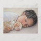 sleeping child cuddling cute beagle puppy postcard