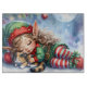 Sleeping Christmas Elf with Calico Kitten Cutting Board