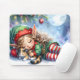 Sleeping Christmas Elf with Calico Kitten Mouse Pad