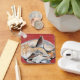 The key chain is made of metal and really sturdy. The flower design is really cheerful. The logo and colors are clear and crisp!