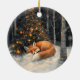 Ceramic ornament art featuring an adorable sleeping fox in front of a Christmas tree in the woods.
