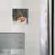 Magnet art featuring an adorable sleeping fox in front of a Christmas tree in the woods.