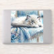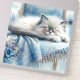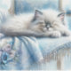 This artwork captures a peaceful sleeping kitten curled atop an elegant vintage chair, surrounded by soft blue tones and delicate floral details. The scene feels gentle, dreamy, and comforting, blending cottagecore charm with shabby chic elegance. Feather-light fur textures, pastel blues, and airy whites create a calming color story that feels soothing and nostalgic. The ornate chair, lace accents, and hand-painted floral elements add a whimsical, storybook quality, while the kitten’s relaxed pose brings warmth and quiet intimacy. Overall, the aesthetic leans cozy, romantic, and softly enchanted, evoking tranquil mornings, slow living, and serene interiors filled with light and calm. AI generated artwork.