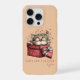 This adorable phone case features a peacefully sleeping kitten tucked inside a gift box, surrounded by tiny hearts and warm, cozy details. The soft peach background creates a gentle, modern look while perfectly complementing the red tones of the illustration. Designed for cat lovers, this case adds a sweet and comforting touch to your everyday essentials.