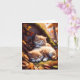 Sleeping Kitten Puppy Fall Leaves Blank Greeting Card