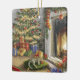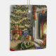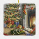 Sleeping Kitty By The christmas Tree Ceramic Ornament