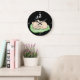 Wall Clock, 25.4 cm Round Black Wooden Frame