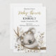 A beautifully rendered watercolor illustration of an adorable koala baby sleeping peacefully on a branch. Crowned with a delicate wreath of white flowers, this little one is surrounded by soft, muted-tone eucalyptus leaves and butterflies, creating a serene and gentle nursery art print.