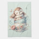 Sleeping Owl in Stacked Floral Teacups Tea Towel