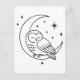 Sleeping Owl on Crescent Moon Line Art Postcard