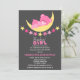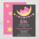 Sleeping Pink Girl Teddy Bear on Moon Baby Shower Invitation