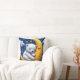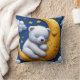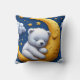 Soft decorative pillow featuring a sleeping teddy bear curled on a crescent moon against a starry night background, perfect for nursery decor, baby rooms, kids bedding, gifts and cosy sleep scenes.