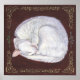 Akiko's original painting of a white cat titled "Sleeping Treasure"